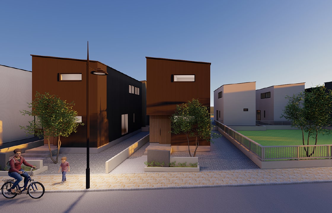 立地に合わせてランカス6棟+駐車場を計画。